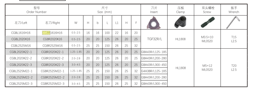The CGBR External Grooving Tool is designed for external grooving and parting on both CNC and conventional lathe machines. Utilizing grooving inserts (ISO designation TGF32R/L..), this robust tool holder provides exceptional performance and reliability for diverse machining applications.