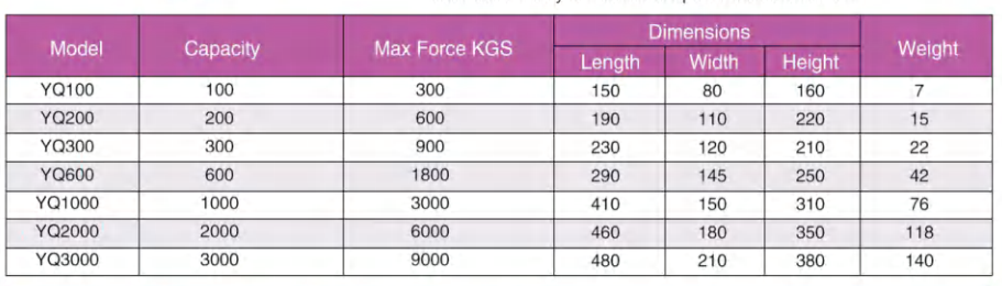 Example: A YQ100 model (100 kg capacity) can theoretically hold up to 300 kg maximum force, but is rated for safe continuous use at 100 kg to account for surface conditions, material variations, and dynamic forces during lifting operations.