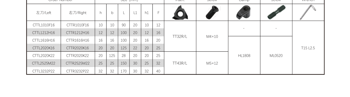The CTTR External Threading Tool is designed for external threading operations on both CNC and conventional lathe machines. Utilizing threading inserts (ISO designation TT32R/L..), this robust tool holder provides exceptional performance and reliability for diverse machining applications.