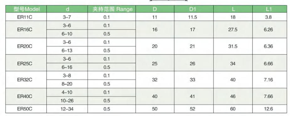 ER/C Collets (Oil Hole Type) - Through-Coolant Collets **SPECIAL COLLET - Internal coolant passage for better chip evacuation** ER/C collets have an internal coolant hole that allows cutting fluid to flow through the collet and out through the tool (if tool has internal coolant). WHY USE COOLANT-THROUGH COLLETS: ━━━━━━━━━━━━━━━━━━━━━━━━━━━━━━━━━━━━━━━━━━━━━━━━━━━━━━━━━━━━━━━━ ✓ Better chip evacuation (especially in deep holes) ✓ Improved tool life ✓ Better surface finish ✓ Essential for internal coolant drills ✓ Reduced heat at cutting edge ━━━━━━━━━━━━━━━━━━━━━━━━━━━━━━━━━━━━━━━━━━━━━━━━━━━━━━━━━━━━━━━━ AVAILABLE SIZES: ┌──────────┬───────────────┬─────────────────────────┐ │ ER/C Size│ Clamping Range│ Typical Tools │ ├──────────┼───────────────┼─────────────────────────┤ │ ER11C │ 3-7mm │ Small coolant drills │ │ ER16C │ 3-10mm │ Common coolant drills │ │ ER20C │ 3-13mm │ Medium drills/taps │ │ ER25C │ 3-16mm │ Standard drills │ │ ER32C │ 3-20mm │ Large drills (popular) │ │ ER40C │ 4-26mm │ Heavy duty drills │ │ ER50C │ 12-34mm │ Large diameter drills │ └──────────┴───────────────┴─────────────────────────┘ REQUIREMENTS: • Tool holder with through-coolant capability • Machine with coolant-through-spindle (CTS) • Cutting tools with internal coolant holes HOW IT WORKS: 1. Coolant enters spindle 2. Flows through tool holder center 3. Passes through ER/C collet center hole 4. Exits through tool's internal passages 5. Reaches cutting edge directly! COMPATIBLE WITH: • BT-ER Tool Holders (with CTS) • HSK-A-ER Tool Holders (standard CTS) • Through-coolant straight shank holders • Internal coolant drills (HM drills with coolant) • ER Nuts (standard type) BEST FOR: • Deep hole drilling • Production drilling • Stainless steel machining • Difficult materials 95 variants | Price: €8.65 - €31.62