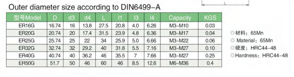 Material: 65Mn, Hardness: HRC44-48, Standard: DIN6499-A