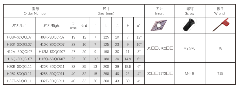 The Highspeed-SDQC External Turning Tool is designed for high-speed external turning on both CNC and conventional lathe machines. Utilizing 55° diamond positive inserts (ISO designation DC.. 0702..), this robust tool holder provides exceptional stability and precision for diverse machining applications.