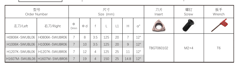 The Highspeed-SWUB External Boring Tool is designed for high-speed boring operations on both CNC and conventional lathe machines. Utilizing button inserts (ISO designation TBGT060102..), this robust tool holder provides exceptional performance and reliability for diverse machining applications.