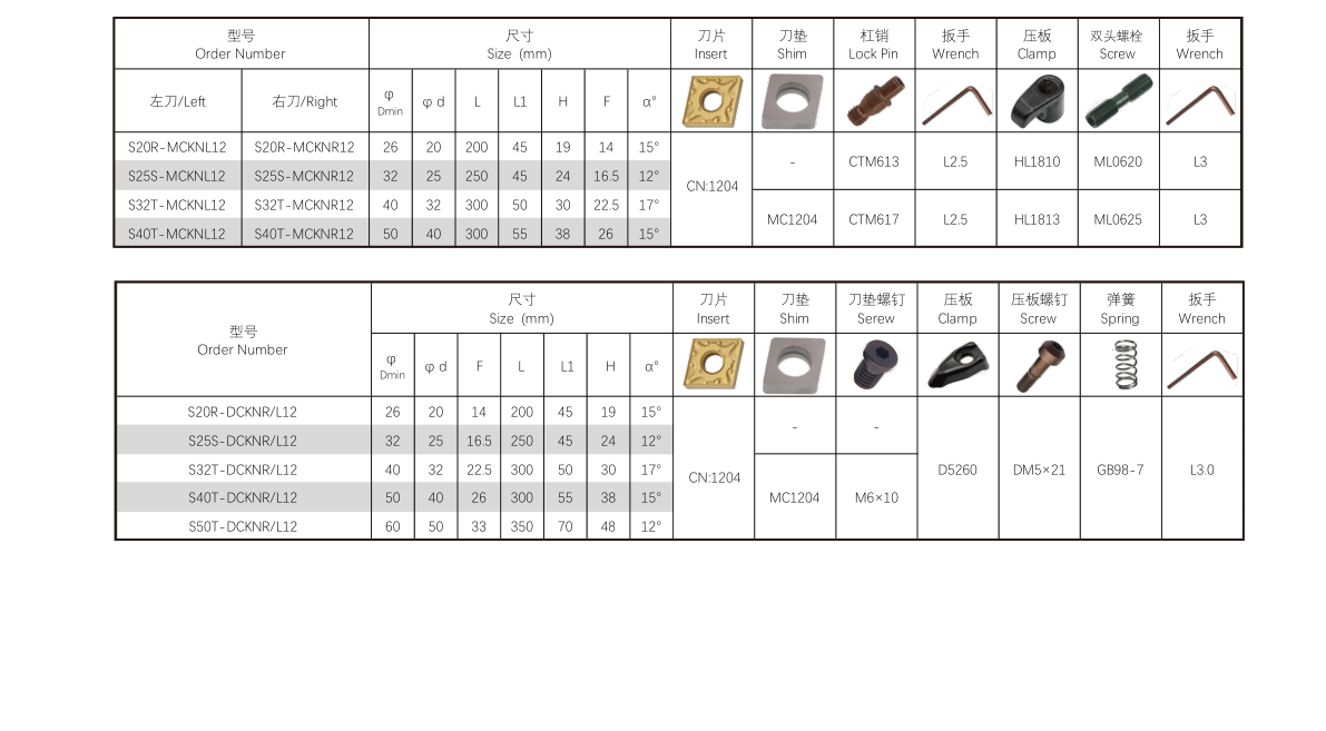 The Internal-MCKN Internal Turning Tool is engineered for internal turning and boring operations on both CNC and conventional lathe machines. Featuring 80° diamond negative inserts (ISO designation CN..), this versatile tool holder provides exceptional stability and precision for various machining applications.