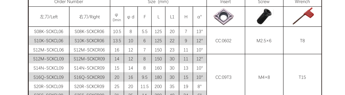 The Internal-SCKC Internal Turning Tool is engineered for internal turning operations on both CNC and conventional lathe machines. Featuring 80° diamond positive inserts (ISO designation CC.. 0602..), this versatile tool holder provides exceptional stability and precision for various machining applications.