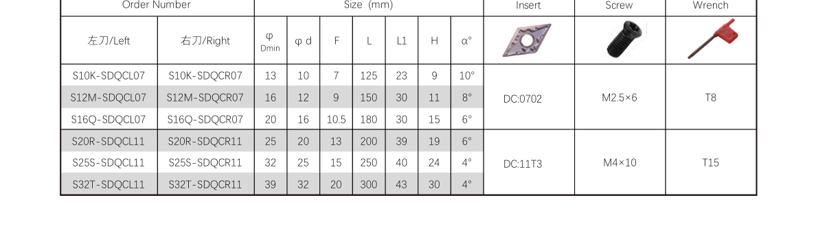 The Internal-SDQC Internal Turning Tool is engineered for internal boring and turning on both CNC and conventional lathe machines. Featuring 55° diamond positive inserts (ISO designation DC.. 0702..), this versatile tool holder provides exceptional stability and precision for various machining applications.