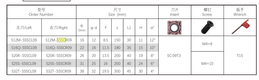 The Internal-SSSC Internal Turning Tool is engineered for internal boring and turning on both CNC and conventional lathe machines. Featuring square positive inserts (ISO designation SC.. 09T3..), this versatile tool holder provides exceptional performance and reliability for various machining applications.