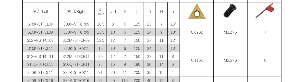 The Internal-STFC Internal Turning Tool is engineered for internal turning and finishing on both CNC and conventional lathe machines. Featuring triangular positive inserts (ISO designation TC.. 0902..), this versatile tool holder provides exceptional performance and reliability for various machining applications.