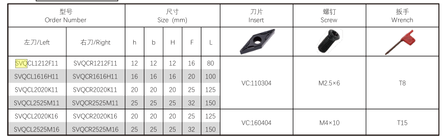 The Internal-SVQ Internal Turning Tool is engineered for precision internal turning on both CNC and conventional lathe machines. Featuring 35° diamond positive inserts (ISO designation VC/VB.. 1103..), this versatile tool holder provides exceptional stability and precision for various machining applications.