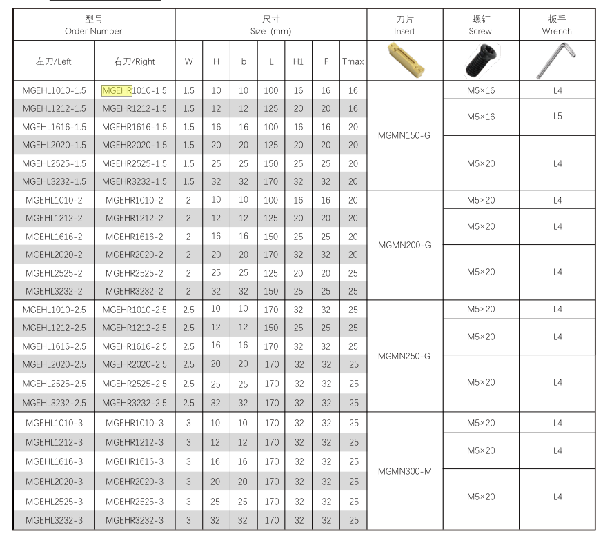 The MGEHR External Grooving Tool is designed for external grooving and parting operations on both CNC and conventional lathe machines. Utilizing grooving inserts (ISO designation MGMN150-G..), this robust tool holder provides exceptional performance and reliability for diverse machining applications.