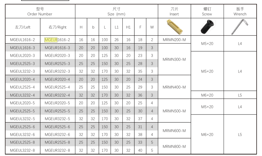 The MGEUR External Grooving Tool is designed for external grooving and recessing on both CNC and conventional lathe machines. Utilizing grooving inserts (ISO designation MRMN200-M..), this robust tool holder provides exceptional performance and reliability for diverse machining applications.