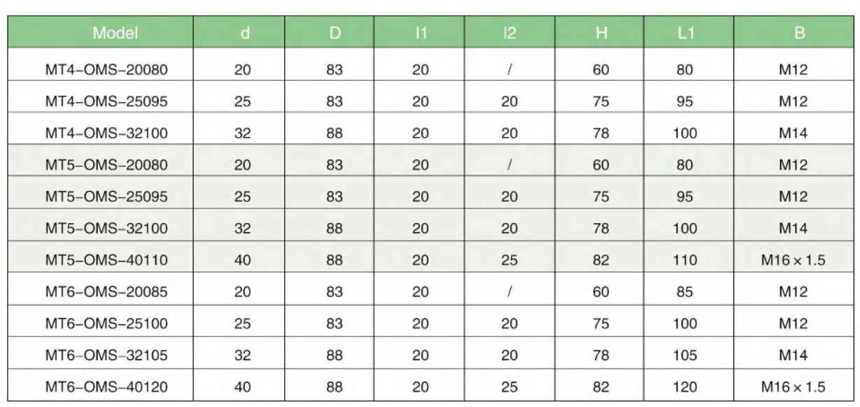 MT/OMS Side Lock Oil Hole Holders are designed for secure clamping of tools with internal coolant delivery in CNC machining centers using Morse Taper connections. These arbors feature side lock mechanisms and oil holes for efficient coolant supply directly to the cutting edge. Key Features: • Oil Hole Design: Through-coolant capability for efficient chip evacuation • Side Lock Mechanism: Secure and reliable tool clamping • Available in MT4, MT5, and MT6 configurations (Morse Taper) • Multiple bore diameters (d) from 20mm to 40mm • Various lengths to suit different machining requirements • High-quality construction for demanding applications • Precision ground surfaces for optimal runout • Compatible with Morse Taper spindles Applications: • Deep hole drilling with coolant supply • High-speed machining with through-coolant tools • End mill operations requiring efficient cooling • Precision machining centers with Morse Taper spindles • Heavy-duty cutting operations with heat dissipation requirements • Universal machining applications with MT interface Technical Specifications: • Coolant pressure capability up to industry standards • Balanced for high-speed operations • Compatible with standard pull studs (M12, M14, M16×1.5) • Morse Taper interface for secure spindle connection