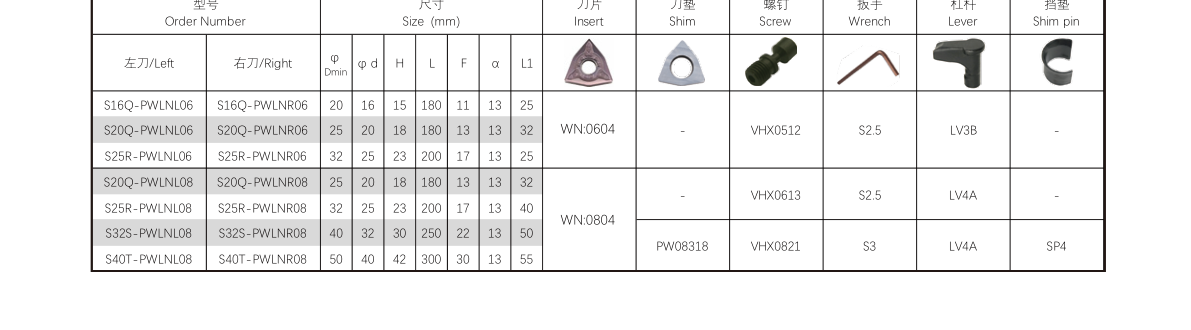 The PWLN Internal Turning Tool is engineered for high-precision internal boring operations on both CNC and conventional lathe machines. Designed to accommodate 80° trigon negative inserts (ISO designation WN.. 0804..), this tool holder features a 95° lead angle and -6° orthogonal rake, ensuring exceptional performance across a wide range of machining tasks.