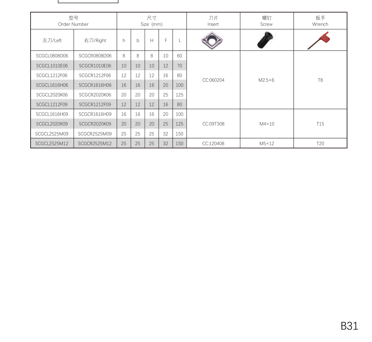 The SCGC External Turning Tool is designed for external turning and grooving on both CNC and conventional lathe machines. Utilizing 80° diamond negative inserts (ISO designation CN..), this robust tool holder provides exceptional stability and precision for diverse machining applications.