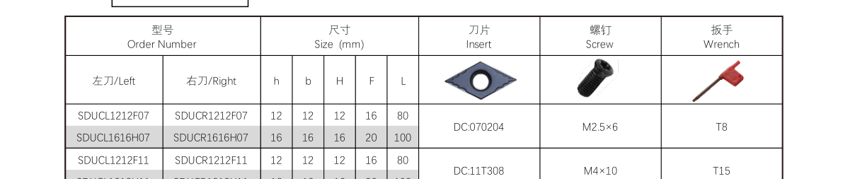 The SDUC External Turning Tool is designed for external turning operations on both CNC and conventional lathe machines. Utilizing 55° diamond negative inserts (ISO designation DC.. 070204..), this robust tool holder provides exceptional stability and precision for diverse machining applications.