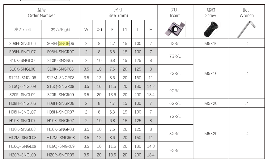 The SNGR External Turning Tool is designed for external turning and grooving on both CNC and conventional lathe machines. Utilizing grooving inserts (ISO designation 6GR/L..), this robust tool holder provides exceptional performance and reliability for diverse machining applications.