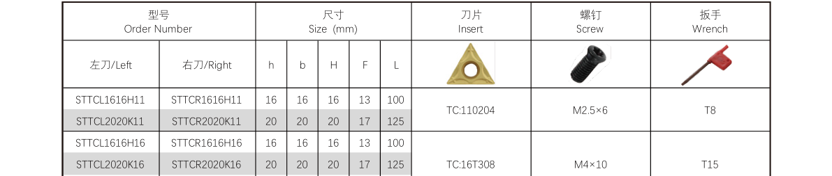 The STTC External Turning Tool is designed for external turning operations on both CNC and conventional lathe machines. Utilizing triangular positive inserts (ISO designation TC.. 110204..), this robust tool holder provides exceptional performance and reliability for diverse machining applications.