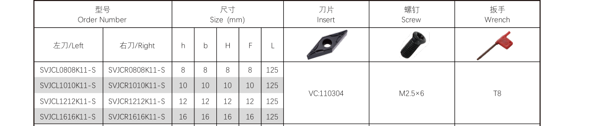 The SVJC External Turning Tool is designed for external turning and finishing on both CNC and conventional lathe machines. Utilizing 35° diamond positive inserts (ISO designation VC.. 110304..), this robust tool holder provides exceptional stability and precision for diverse machining applications.